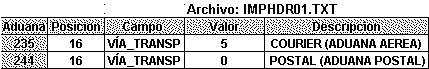 transporte, asociadas a los manifiestos de mensajería, y transmitidas